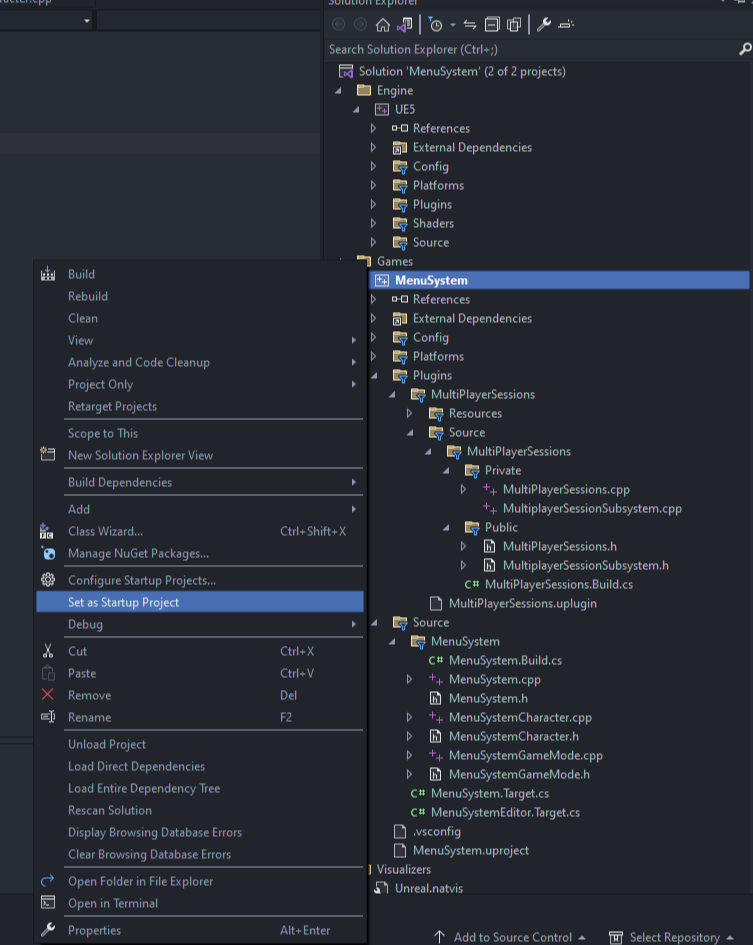 ์๋์ ๊ฐ์ด Solution Explorer์์ ๊ฒ์ ํ๋ก์ ํธ๋ฅผ ์ฐํด๋ฆญ ํ ๋ค, Set as Startup Project ์ต์ ์ ์ ํํ์ฌ ์์ ํ๋ก์ ํธ๋ก ์ค์ ํ๋ฉด ํด๊ฒฐ๋๋ค.