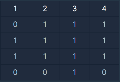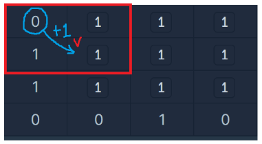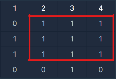 1์ 0๋ก ์ฑ์์ง ํ(board)๊ฐ ์์ต๋๋ค. ํ 1์นธ์ 1 x 1 ์ ์ ์ฌ๊ฐํ์ผ๋ก ์ด๋ฃจ์ด์ ธ ์์ต๋๋ค. ํ์์ 1๋ก ์ด๋ฃจ์ด์ง ๊ฐ์ฅ ํฐ ์ ์ฌ๊ฐํ์ ์ฐพ์ ๋์ด๋ฅผ return ํ๋ solution ํจ์๋ฅผ ์์ฑํด ์ฃผ์ธ์. (๋จ, ์ ์ฌ๊ฐํ์ด๋ ์ถ์ ํํํ ์ ์ฌ๊ฐํ์ ๋งํฉ๋๋ค.)