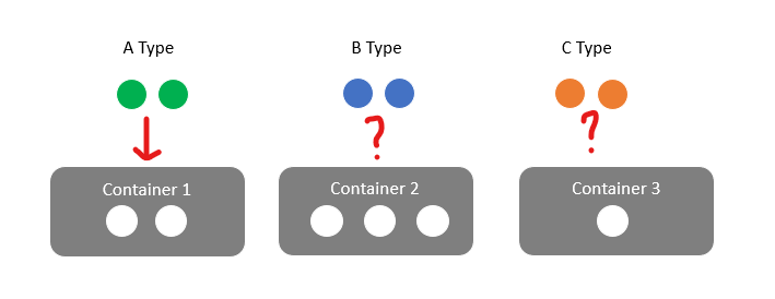 ์ปจํ ์ด๋ ๋น ๊ณต ๊ฐ์์ ์ข ๋ฅ ๋น ๊ณต ๊ฐ์๊ฐ ์ผ์นํ๋ฉด ์ปจํ ์ด๋ ๋น ํ ์ข ๋ฅ์ ๊ณต๋ค๋ง ๋ด์ ์ ์๋ค.