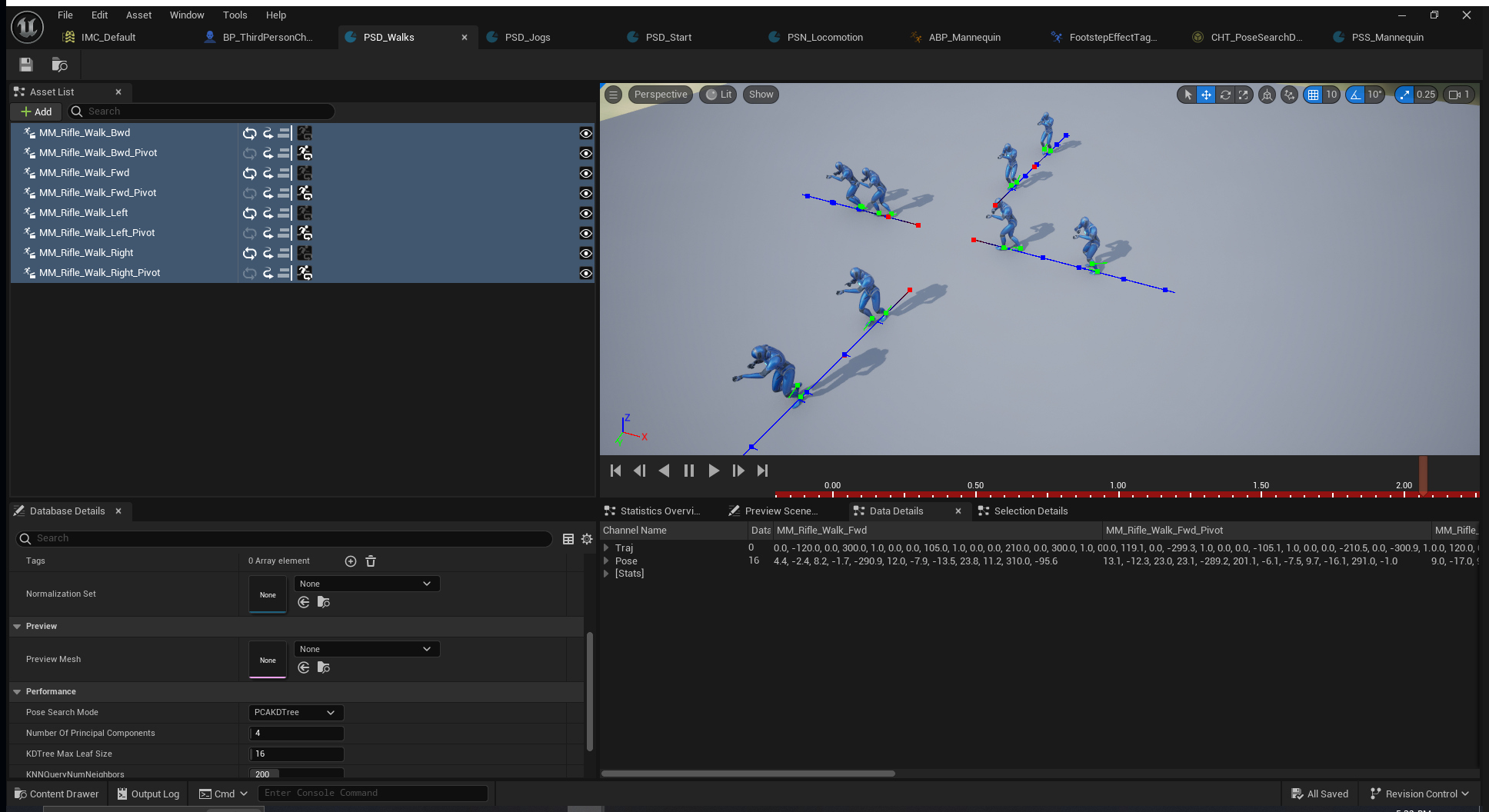 : ๋ชจ์ ๋งค์นญ ์ ์บ๋ฆญํฐ์ ๋ค์ ํ๋ ์์ผ๋ก ์ฐ๊ฒฐ๋ ์ ์๋ ์ ๋๋ฉ์ด์ ๋ค๊ณผ PoseSearchSchema์ ๋ฐ๋ฅธ ์ํ๋ง ๋ฐ์ดํฐ๊ฐ ์ ์ฅ๋ ์์ . PoseSearchSchema์์ ์ค์ ํ๋ Sample Channel์ ๋ฐ๋ผ ์ ๋๋ฉ์ด์ ๋ฐ์ดํฐ๋ฅผ ์ํ๋งํ์ฌ ์ ์ฅํ๋ค. ๋ชจ์ ๋งค์นญ ์ ์ด ์ํ๋ง ํด๋๋ ๋ฐ์ดํฐ๋ฅผ ๋ฐํ์ผ๋ก ๋ค์ ํ๋ ์์ ์ฐ๊ฒฐ๋ ์ ๋๋ฉ์ด์ ์ ์ฐพ๋๋ค.