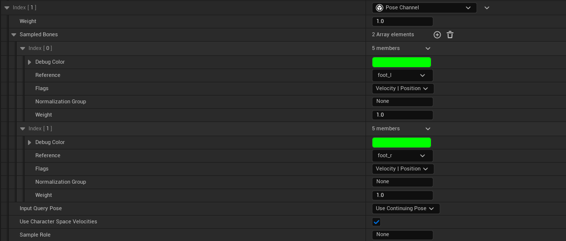 (Sample Rate(๋ฐ์ดํฐ ๋ฒ ์ด์ค์ ์๋๋ฉ์ด์ ๋ฐ์ดํฐ ์ํ๋ง ์ ๋ฐ์ดํธ ๋น๋)๋ฅผ ์ค์ ํ๊ฑฐ๋ Pose Matching ๊ณผ Trajectory Matching์ ๊ฐ์ค์น๋ฅผ ์ค์ ํ๊ฑฐ๋, Pose Match์ Sample Bone์ ์ค์ ํ ์ ์๋ค.)