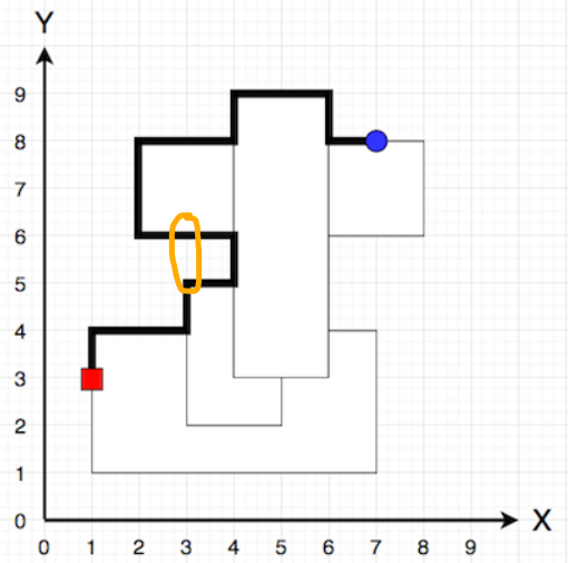 int solution(vector<vector<int>> rectangle, int characterX, int characterY, int itemX, int itemY) {