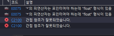 μ¦, float += float * float νμμ μ°μ°μμ '*' μ°μ°μλ₯Ό κ³±νκΈ°κ° μλ ν¬μΈν° μ°μ°μλ‘ μΈμνλ λ¬Έμ κ° λ°μν κ²μ λλ€.